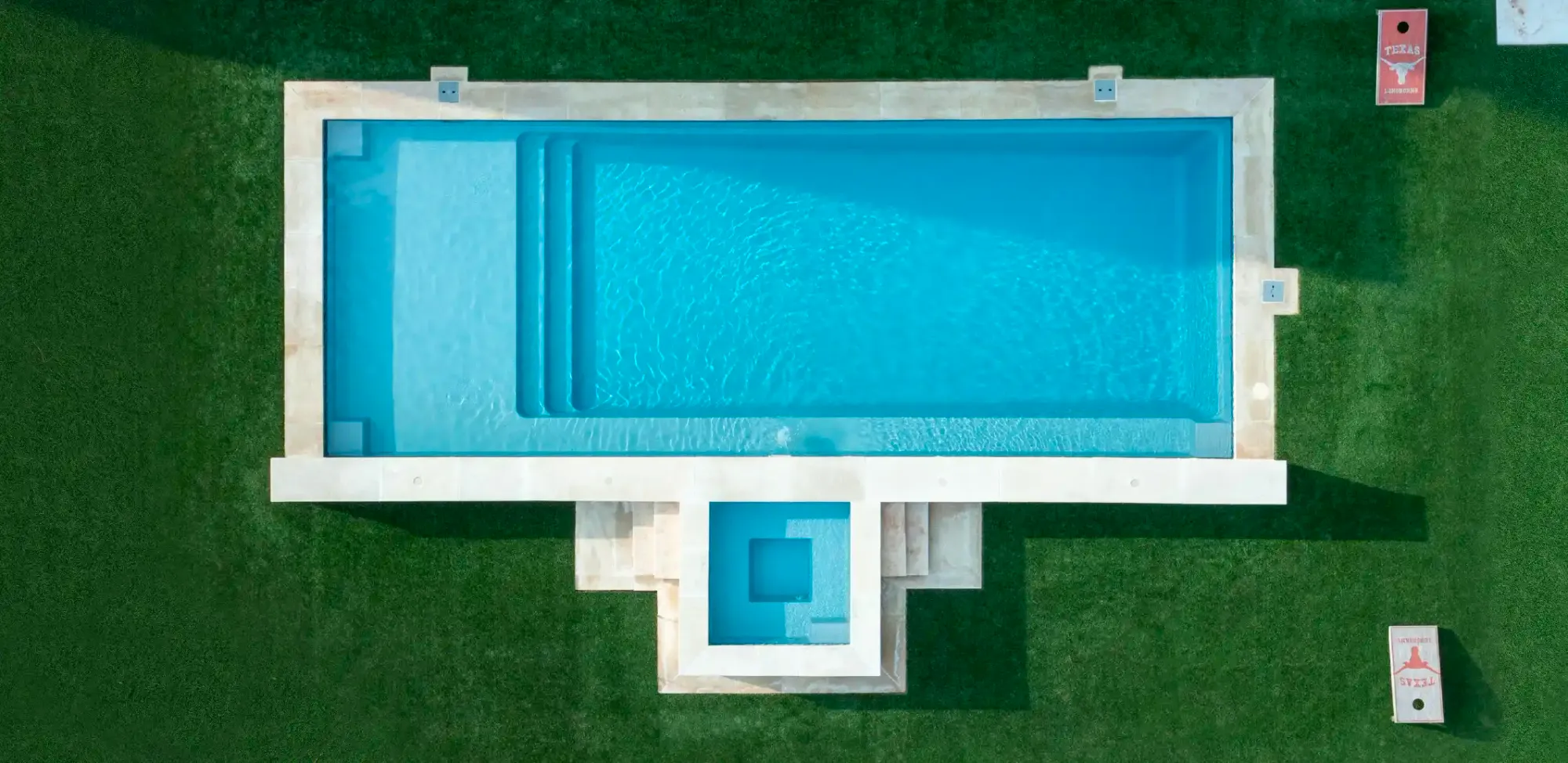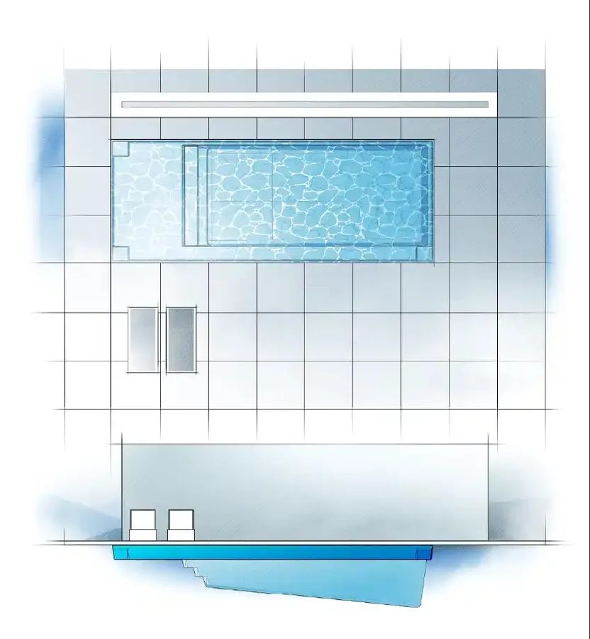 The Apex Collection takes the concept of the popular full-width splash deck to another level with the marriage of a full-length bench along the right side. This provides the luxury of a spacious resort lounge area while also having the option of additional comfort the full length of your pool. You can enjoy relaxing in the shallow end or be active in the deeper end of the pool. This is contemporary pool design at its highest and most beautiful level.