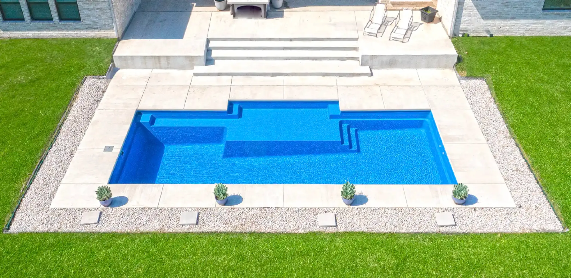 The Dynasty Collection was created for those who believe in taking contemporary design to a showcase level. This fiberglass pool model includes a commanding splash deck entry platform that allows for a full-length swim channel. The size allows it to be used as a centerpiece for forward-thinking landscape design while remaining purposeful. Enjoy unlimited swim activities or relax with the deep-end extended bench.